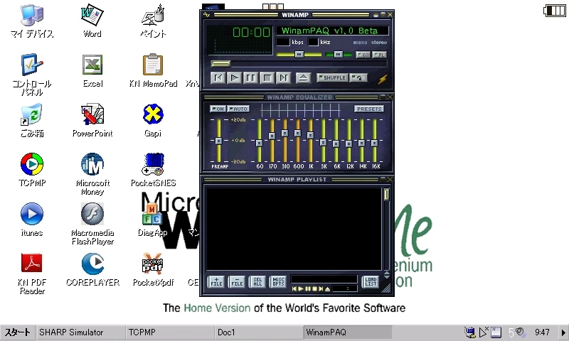 今回使用するのは、Winamp の Windows CE 移植版「WinamPAQ」です。再生できるファイル形式は WMA のみ、プラグインは使えないなど機能は限定的ですが、Nitrogen 等では再生できない WMA 用に導入してみてはいかがでしょうか。