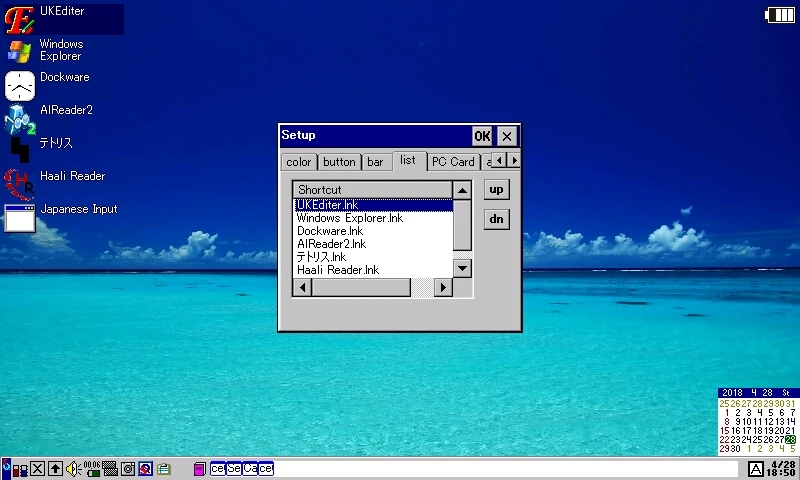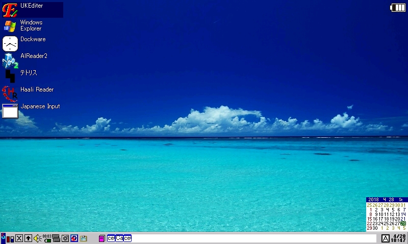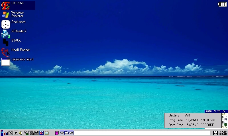 等があります。タスクバーには「A」のマークがありますが、IME は付属しません。ceOpener を使用しない場合は、Japanese Input for SHARP Brain を併用しましょう。